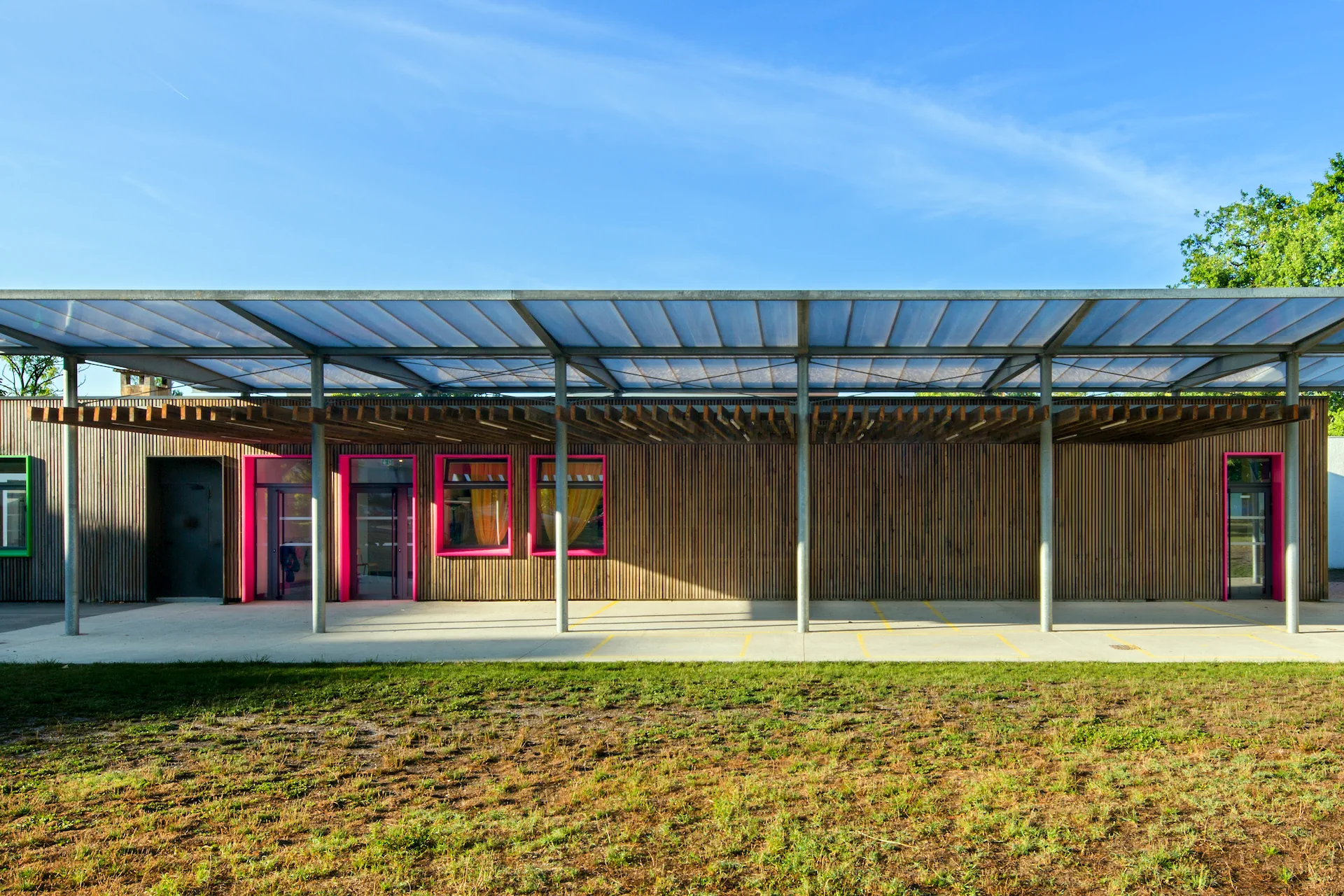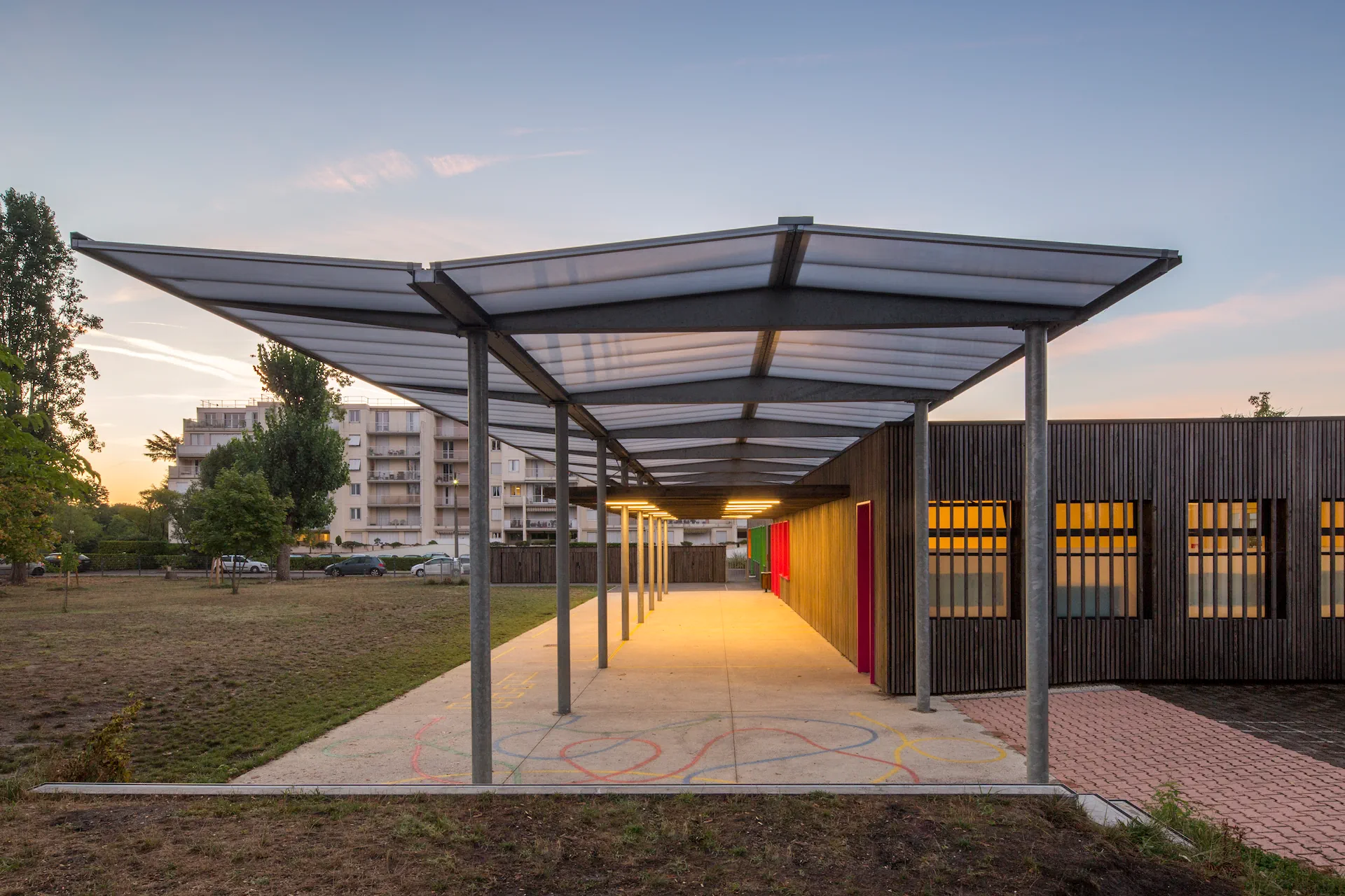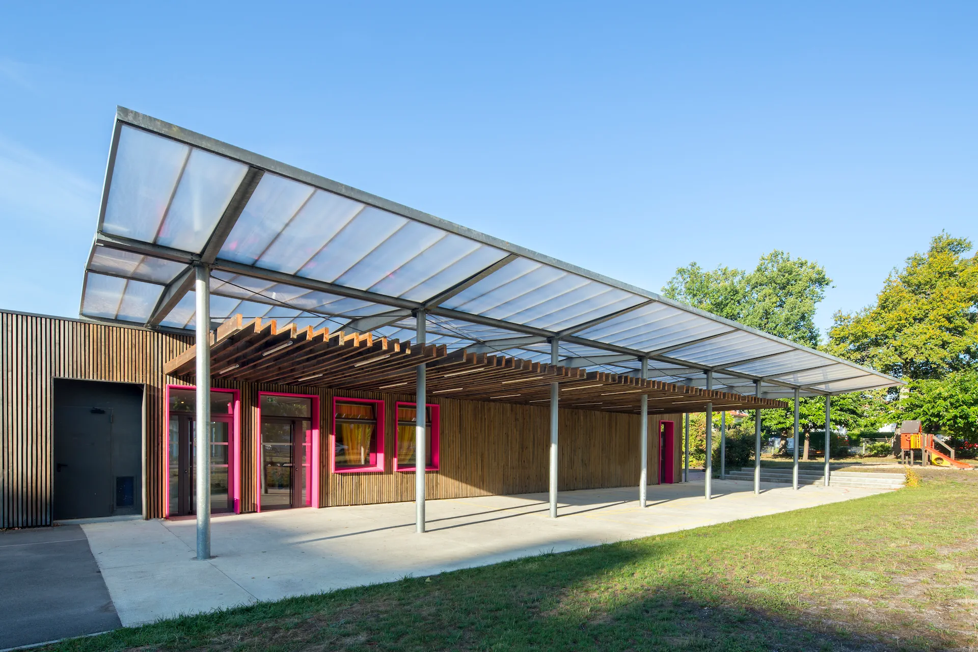 L’école s’ouvre enfin sur son parc, par la construction d’un vaste préau de 200m².