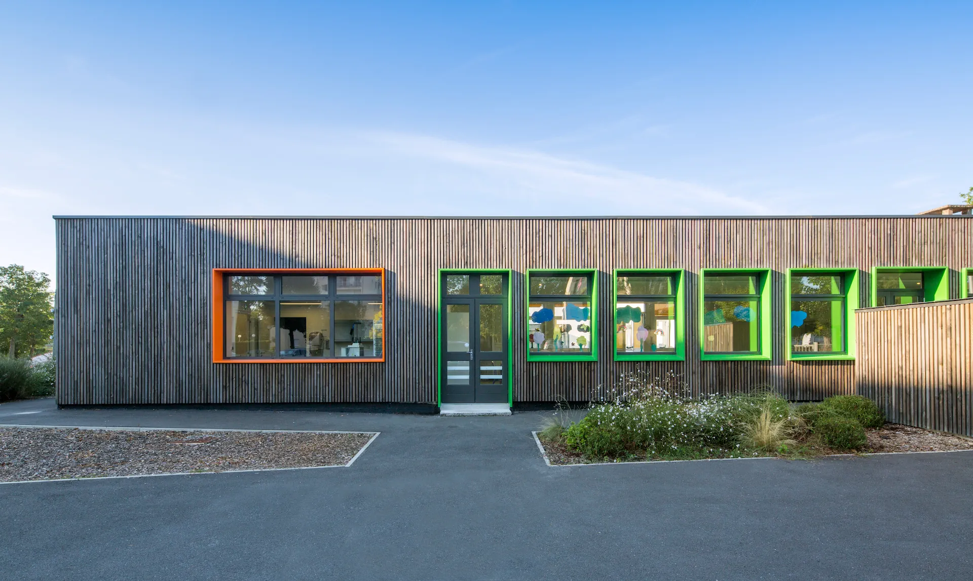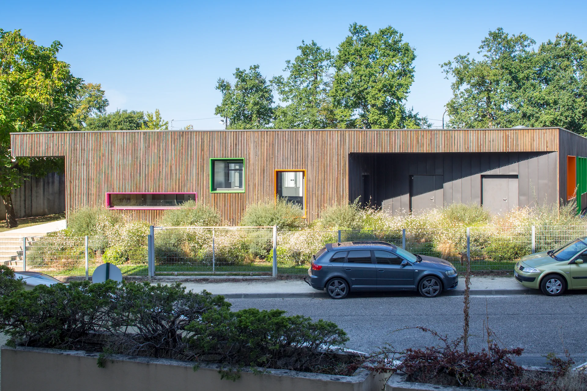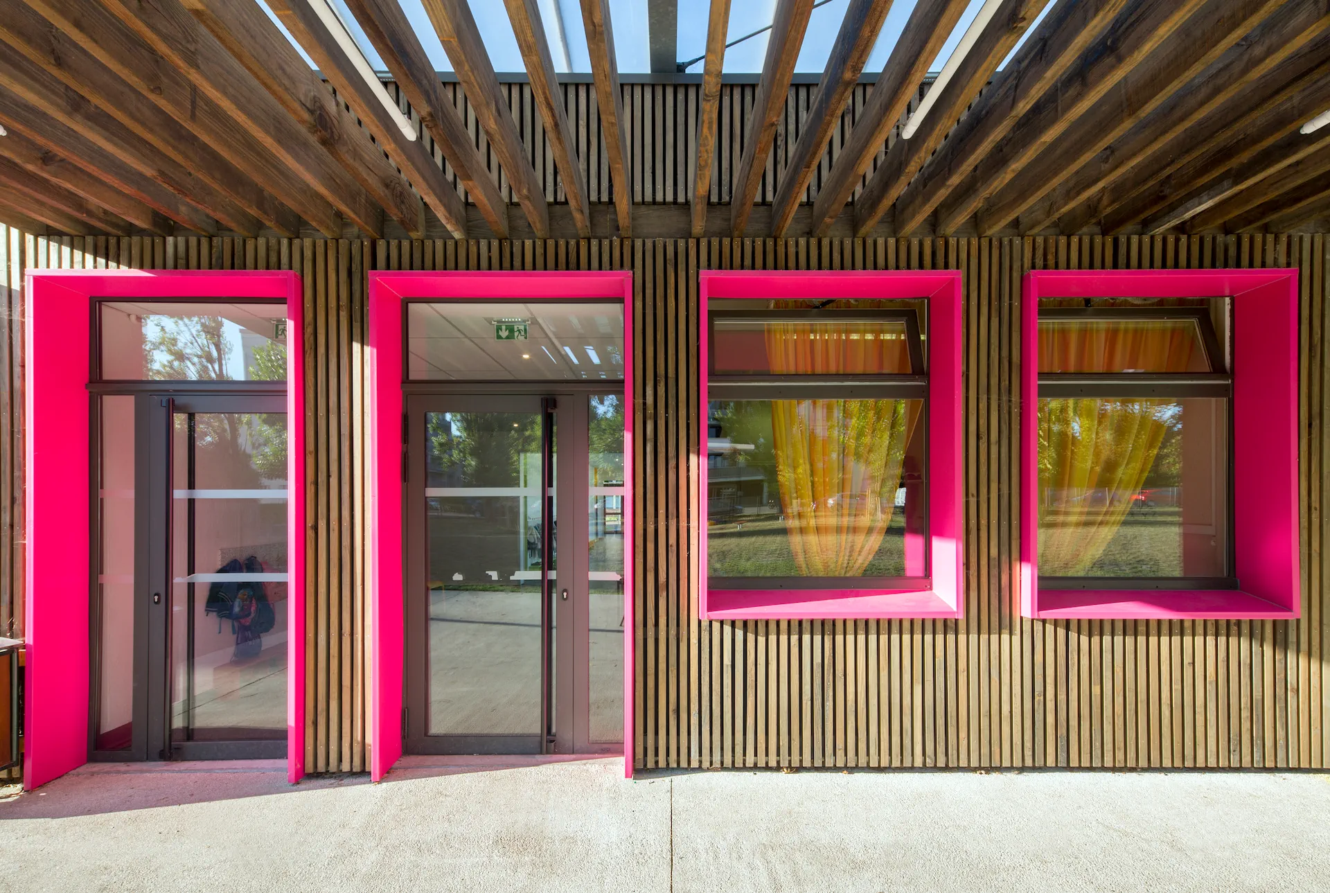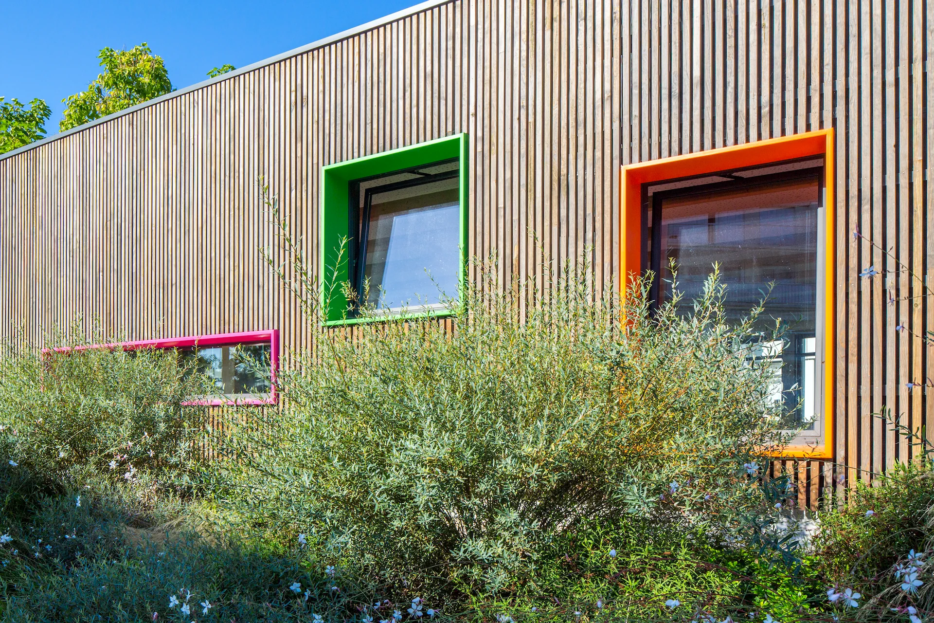 Son image est profondément refondue, par l’application en façades de bois et de grands cadres colorés.