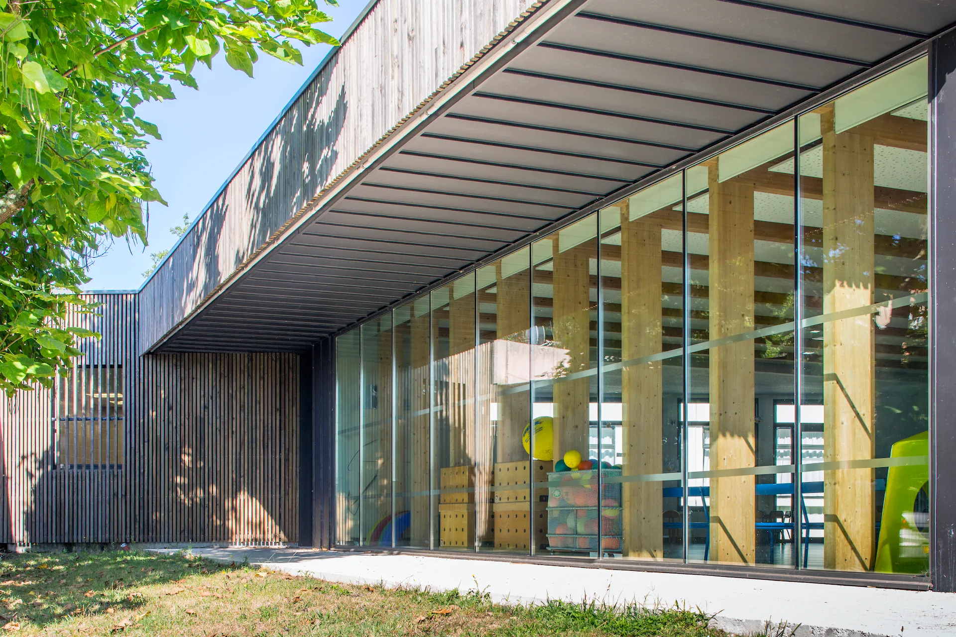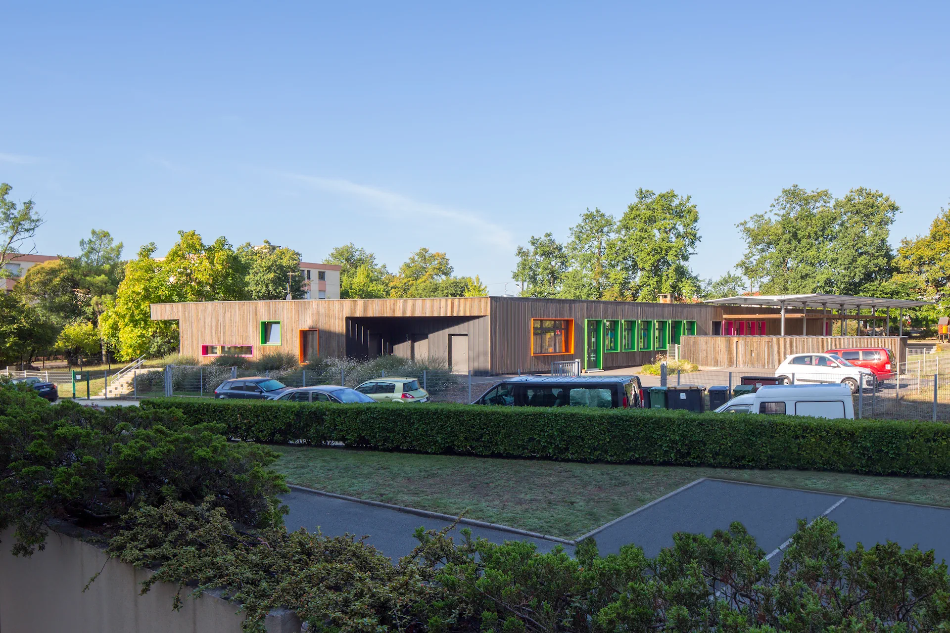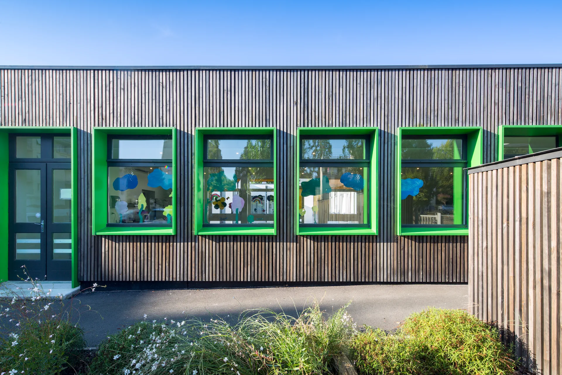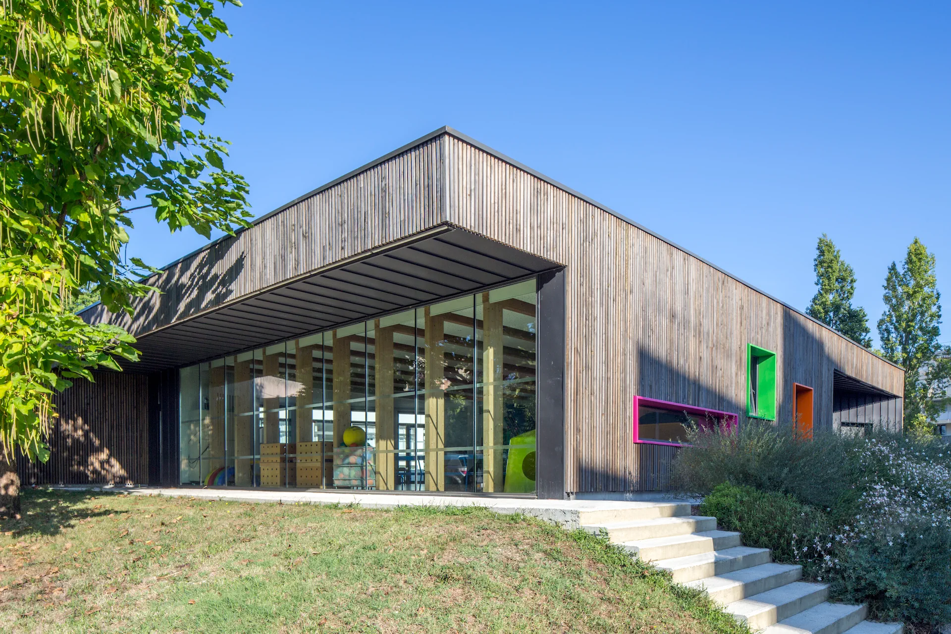 Son image est profondément refondue, par l’application en façades de bois et de grands cadres colorés.