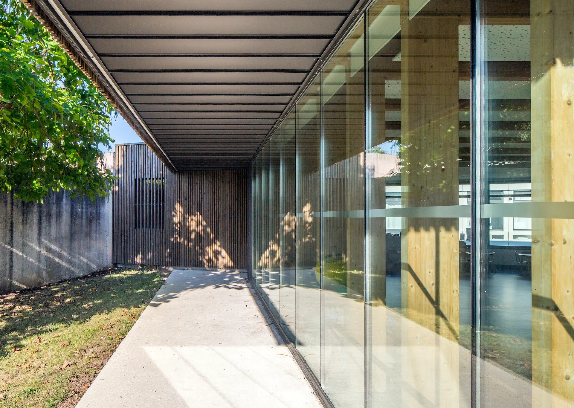 L’extension est implantée parallèlement à la rue du Parc, et elle permet d’articuler le nouveau fonctionnement de l’établissement autour d’un second patio.