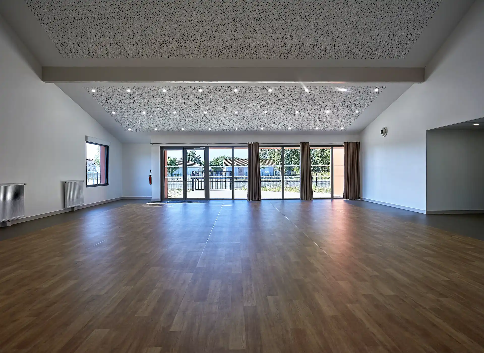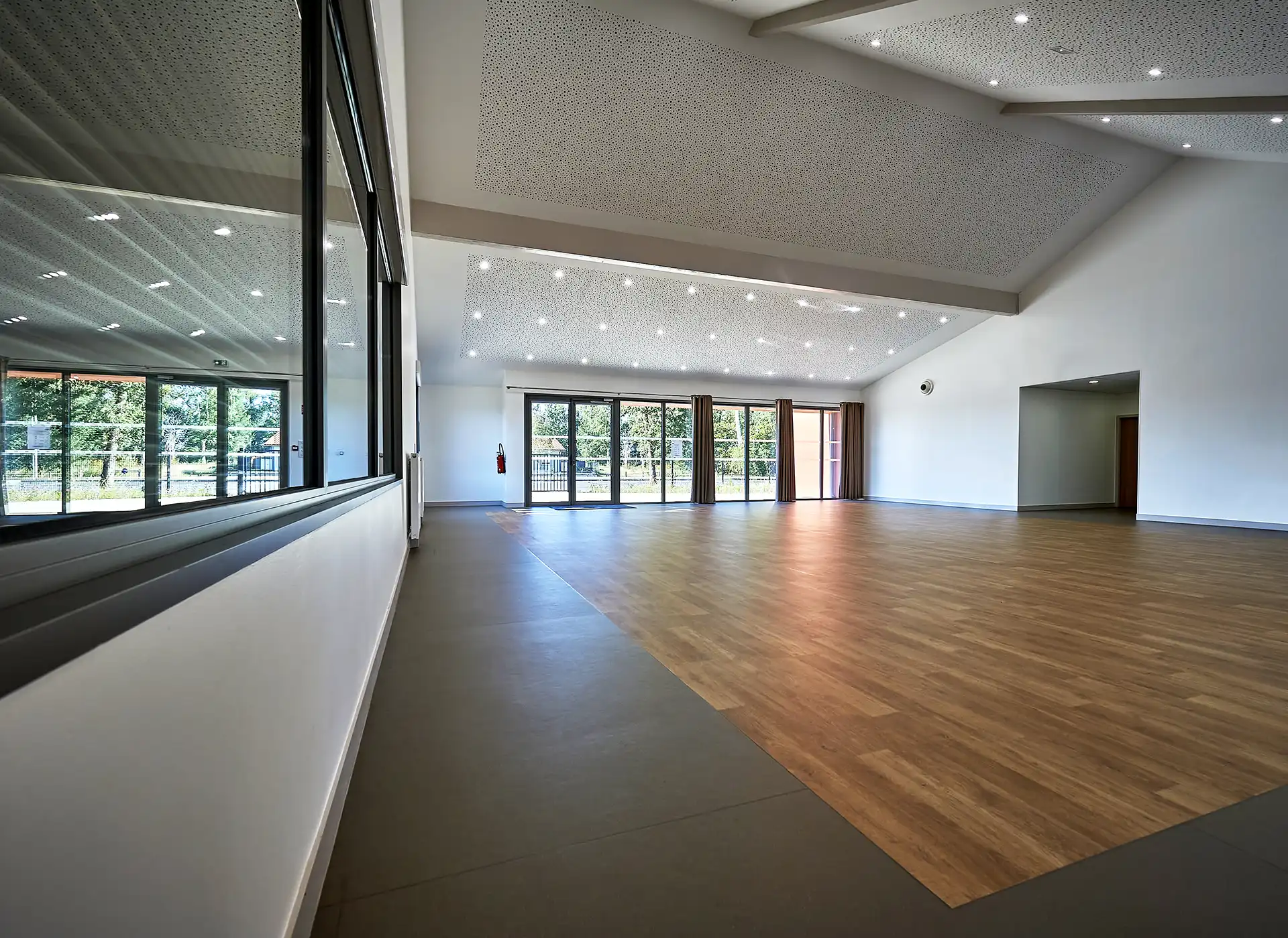 Le bâtiment existant conserve ses fonctions, mais bénéficie d’une rénovation énergétique globale. Les toitures sont isolées et les façades reçoivent des ITE à vêtures mêlant bois naturel et panneaux composites, revalorisant l’architecture post-moderne de cette construction de 1974 qui voit ses lignes « éclaircies ».